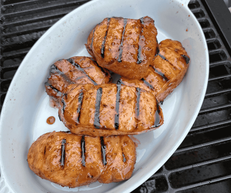 We grill them hot on the gas side of the Flex Fuel grill to build bold grill marks and caramelization. Then comes the finish: a raspberry chipotle glaze brushed on during the final minutes. The result is smooth sweet heat layered over juicy pork with just the right amount of char.