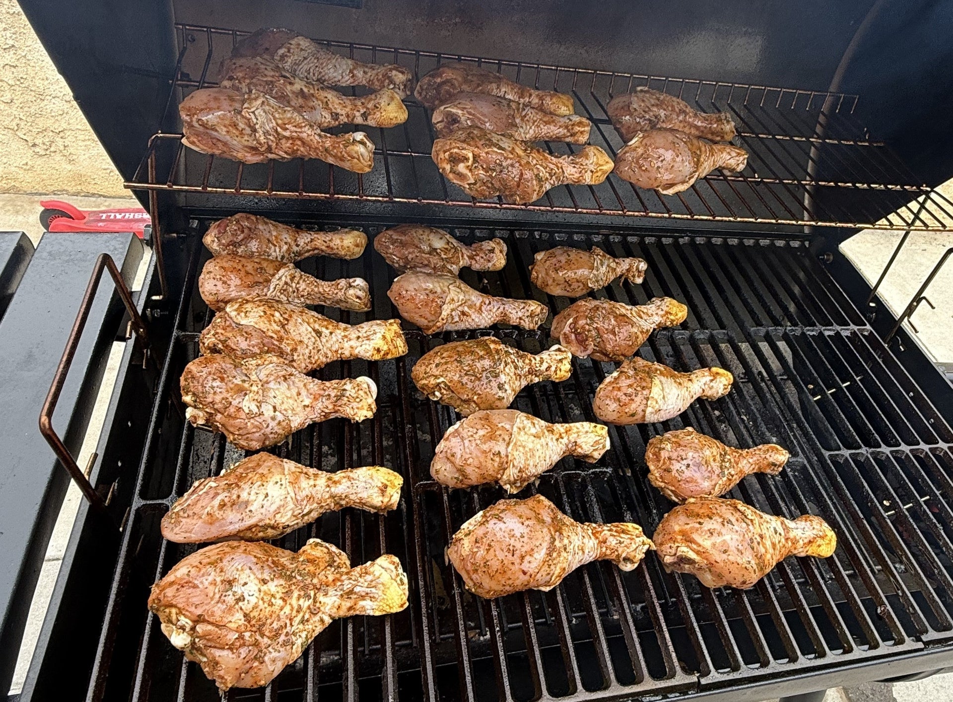 The offset design of the Smokin’ Pro Barrel Grill and Offset Smoker makes it ideal for low and slow smoking, giving your chicken legs a deep, wood-fired flavor. With plenty of cooking space and control over your heat zones, you can smoke a full batch of drumsticks while still having room for sides like smoked potatoes or grilled corn.