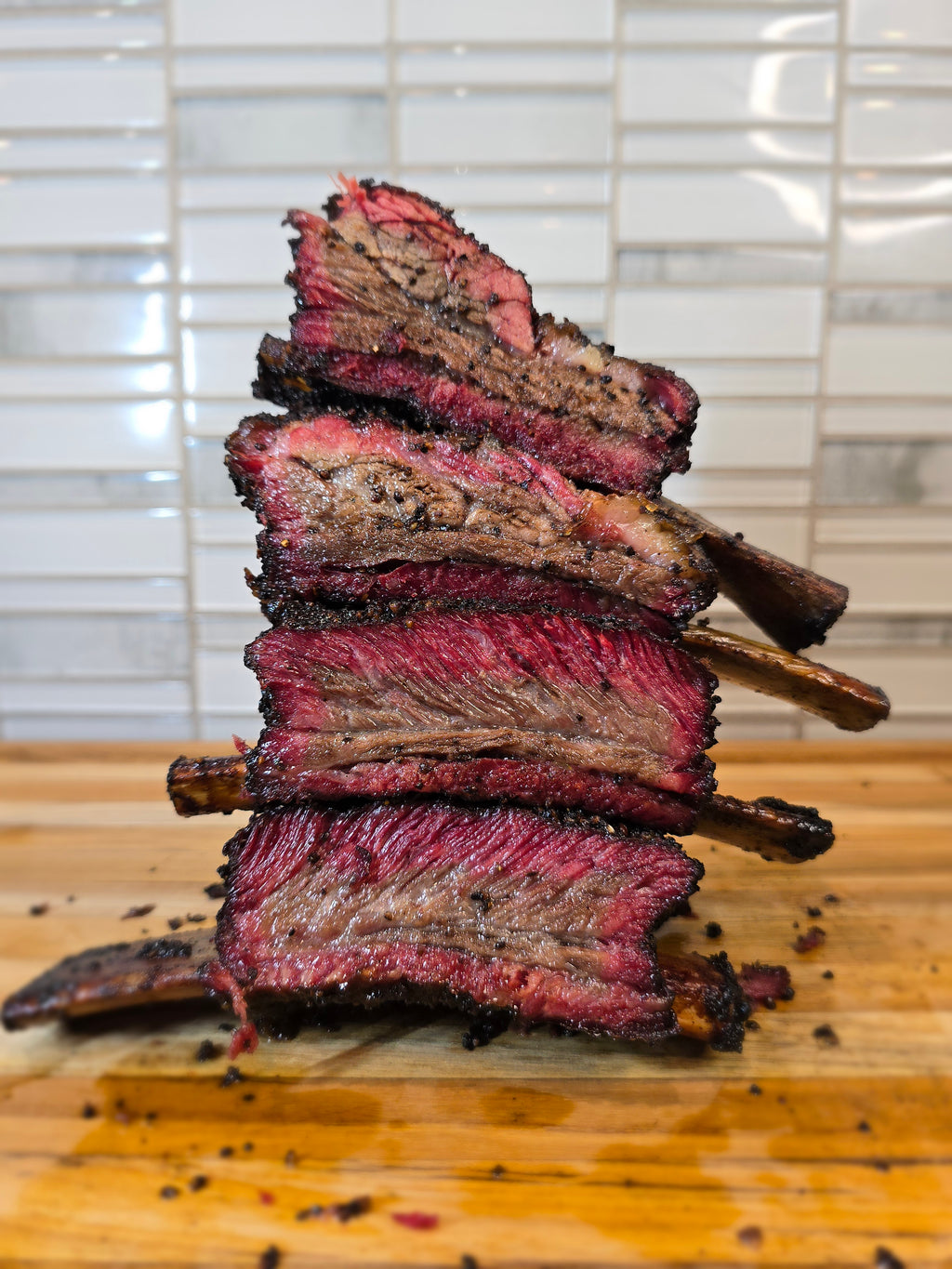 After resting, slice between the bones and serve hot. Pair with BBQ classics like baked beans, slaw, cornbread—or shred for beef rib tacos the next day.