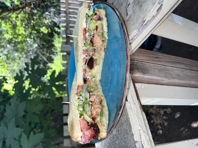 Lightly toast the sourdough bread. Spread mayonnaise on each slice, then layer with avocado, lettuce, tomato, and the smoked salmon.