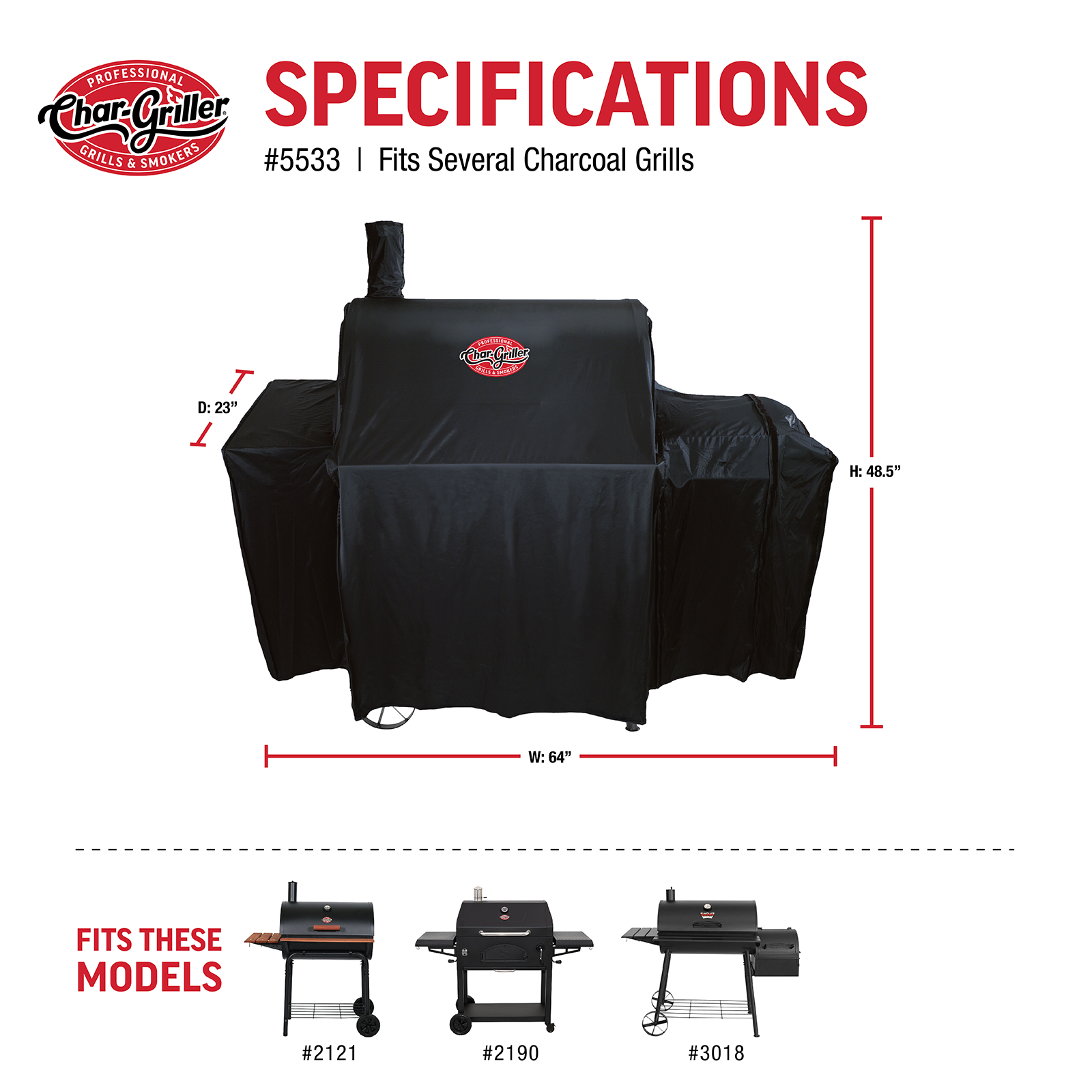 • Fits Char-Griller models Super Pro 2121, Legacy Charcoal Grill 2190, Smokin' Ace 3018, Raider Charcoal Grill 2799, and Barrel Pro Charcoal Grill CG30040825