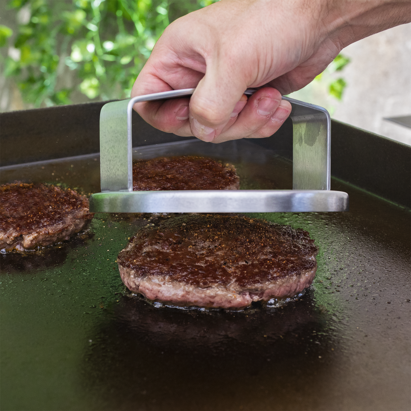 Easily accomplish the perfect sear and crust to lock all those delicious flavors into your burger patties with the Flat Iron Burger Press. Perfect for cooking up amazing smash burgers whenever you want.